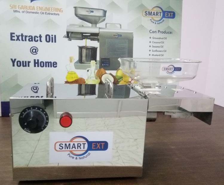 - Power: 600W; Capacity: 4-8 kg/hr; Oil yield: >95% of oil content of the material